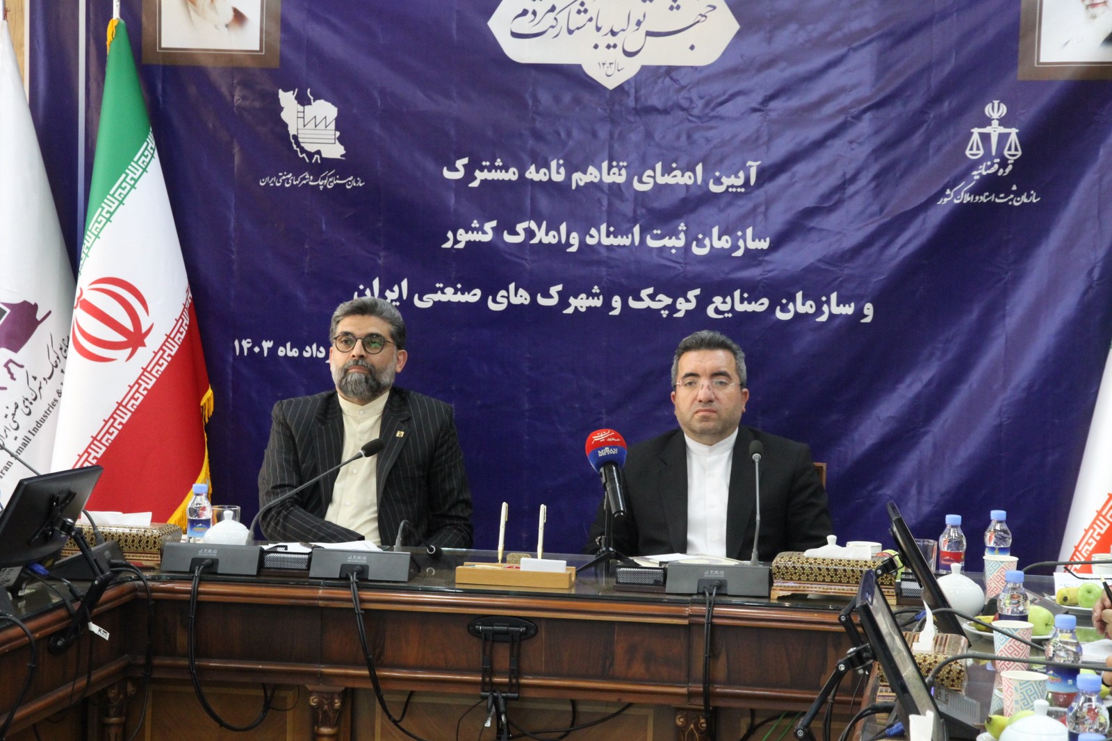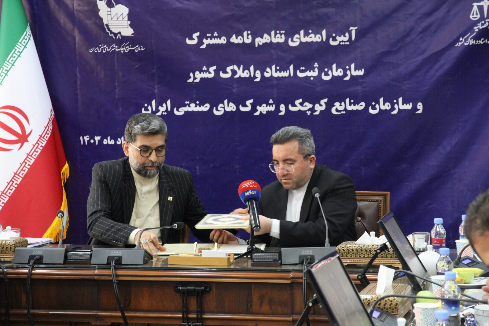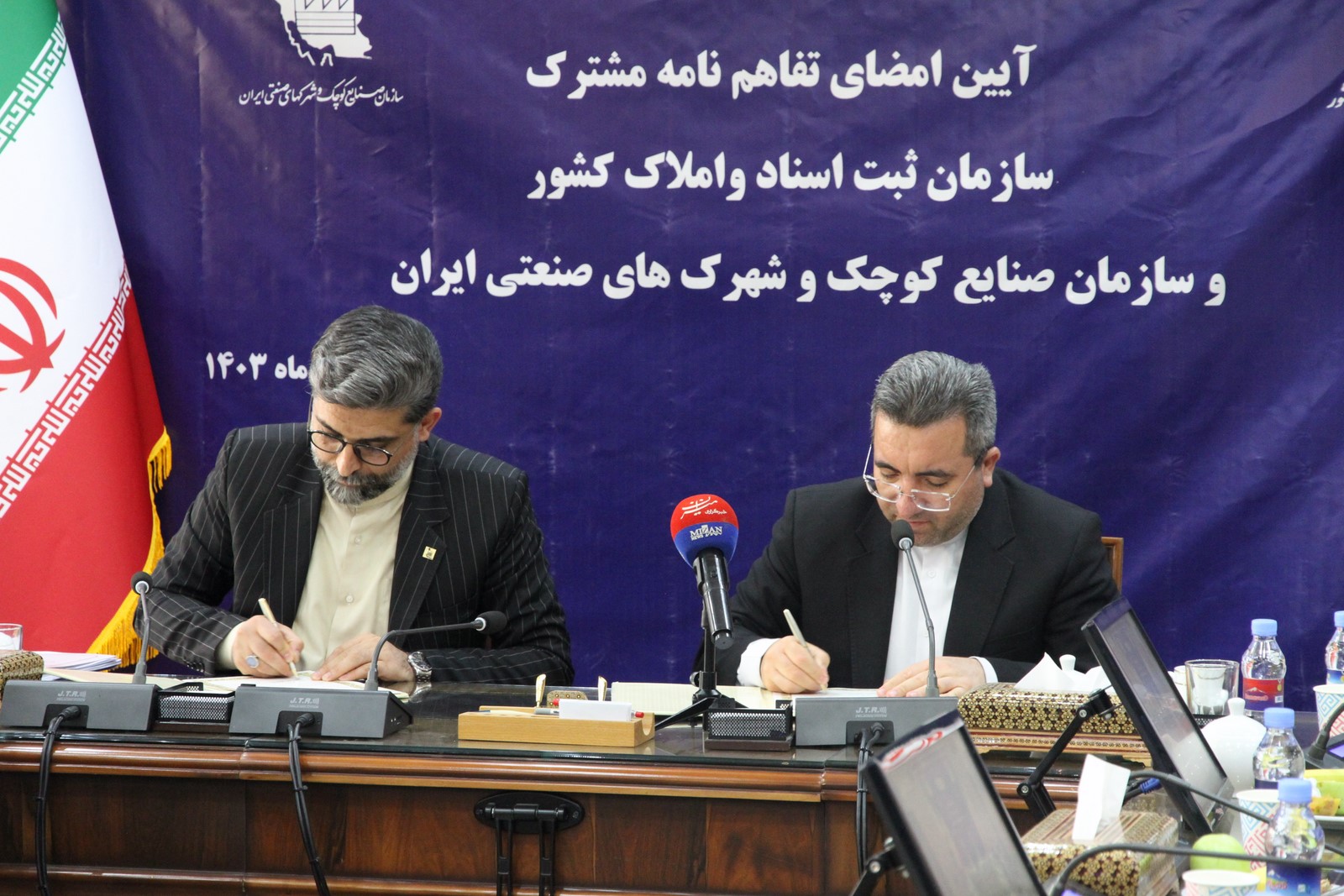 انعقاد تفاهم نامه همکاری مشترک سازمان صنایع کوچک و شهرک‌های صنعتی ایران با سازمان ثبت اسناد و املاک کشور؛