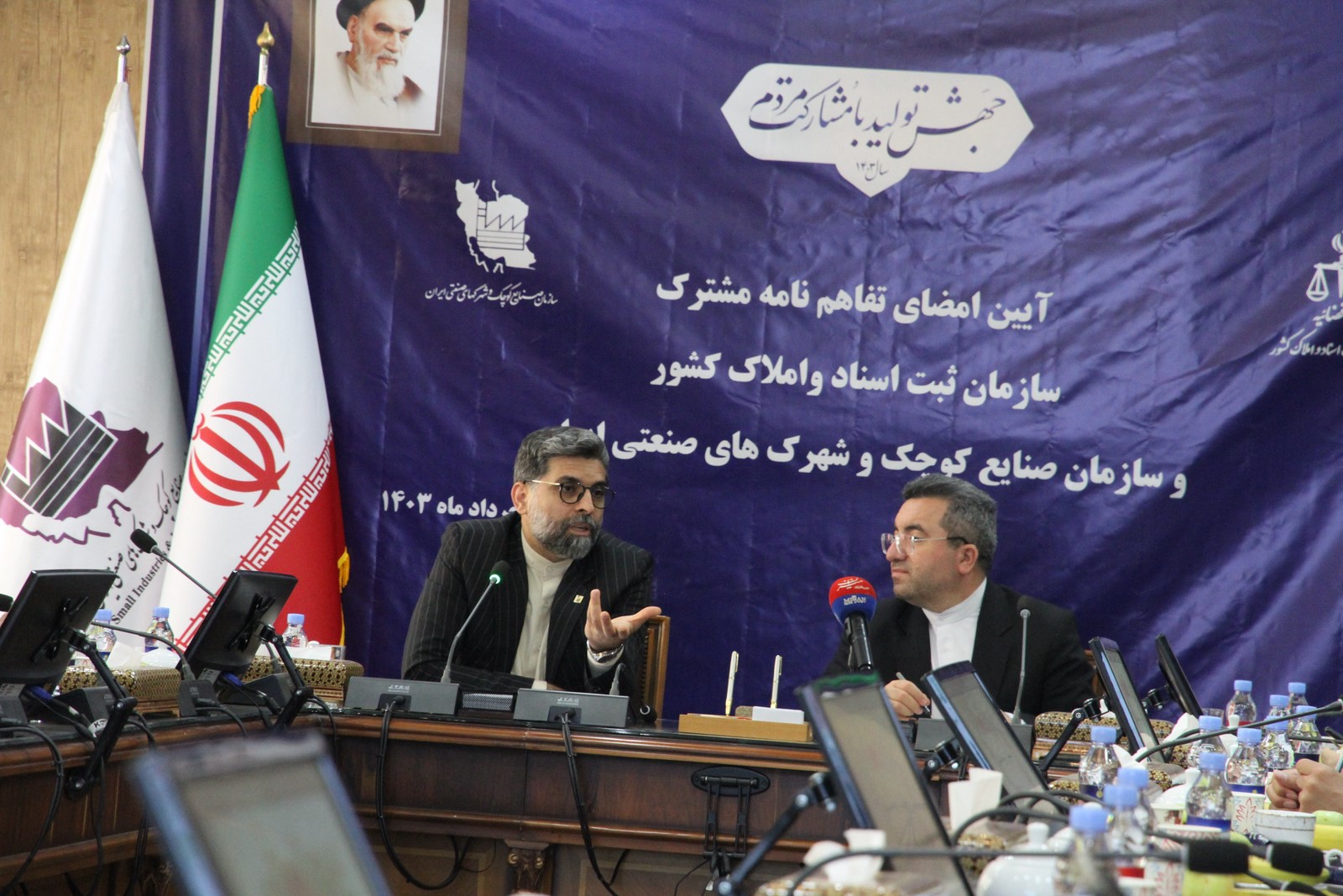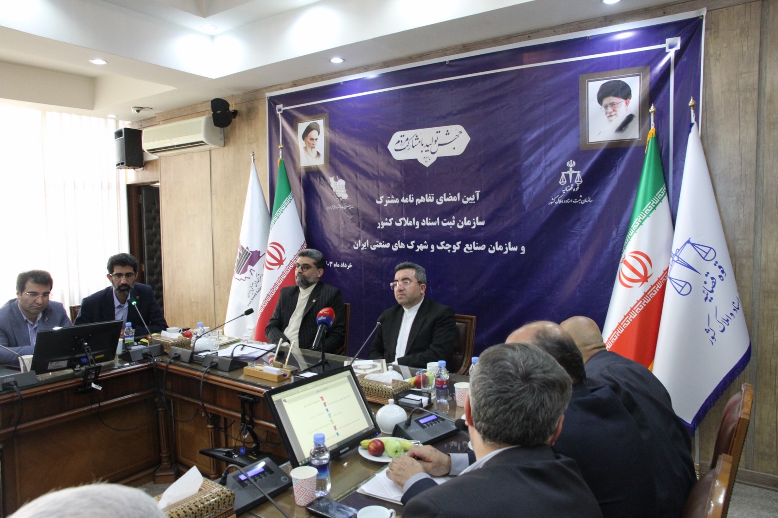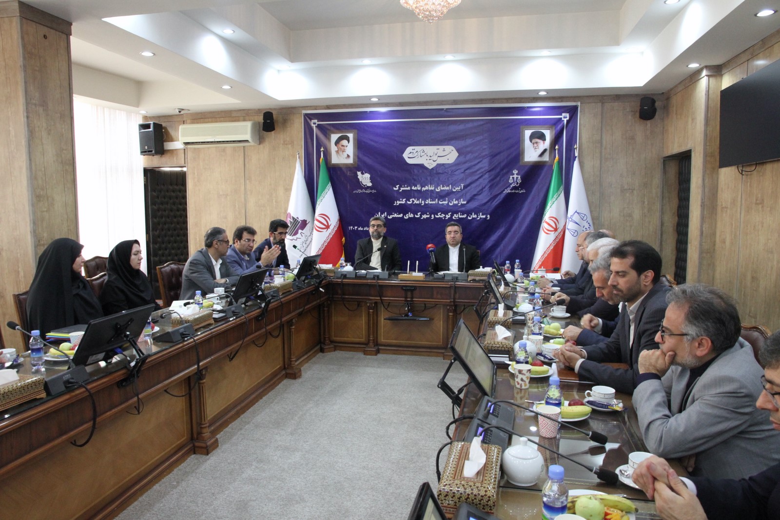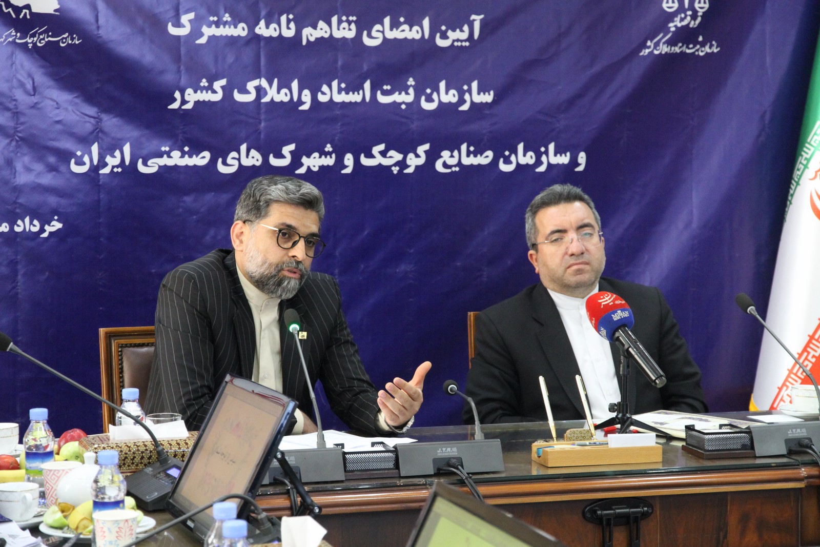 انعقاد تفاهم نامه همکاری مشترک سازمان صنایع کوچک و شهرک‌های صنعتی ایران با سازمان ثبت اسناد و املاک کشور؛