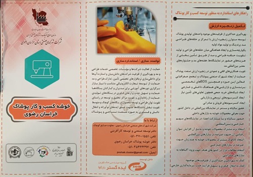 وی خوشه پوشاک خراسان رضوی را نماد پیشه و هنر ایرانی با اقتصادی مشارکتی و رقابت پذیر در منطقه از طریق رفع حلقه های مفقوده زنجیره ارزش (مواد اولیه، تحقیق و توسعه، طراحی و مد، توسعه بازار و برندینگ) و توسعه مهارت های انسانی در زمینه تولید پوشاک دانست.