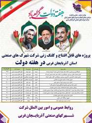مدیرعامل شرکت شهرک‌های صنعتی آذربایجان‌غربی گفت: همزمان با هفته دولت در این استان در بخش شهرک‌ها و نواحی صنعتی آذربایجان‌غربی ۱۲ طرح به بهره‌برداری رسید.
