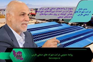 مدیرعامل شرکت شهرک‌های صنعتی فارس، از واحدهای صنعتی مستقر در این استان دعوت کرد تا با مشارکت در احداث نیروگاه‌های خورشیدی مقیاس کوچک بر روی سقف سوله‌های واحدهای صنعتی ، گامی مهم در راستای رفع چالش ناترازی برق و توسعه انرژی‌های تجدیدپذیر بردارند.