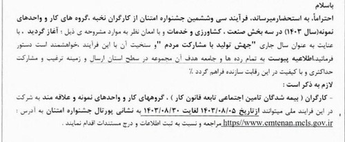 قابل توجه کلیه مدیران محترم واحدهای صنعتی، تولیدی و خدماتی مستقر در شهرک ها و نواحی صنعتی خراسان جنوبی: