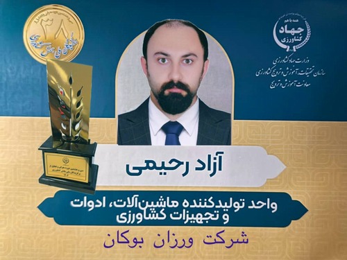 مدیر شرکت ورزان بوکان به عنوان برترین تولید کننده ماشین آلات کشاورزی ایران انتخاب شد.
