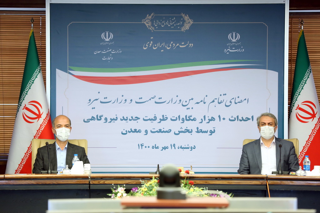 تفاهم‌ نامه همکاری وزارت نیرو و وزارت صنعت، معدن و تجارت در زمینه ایجاد حداقل 10 هزار مگاوات ظرفیت جدید نیروگاهی از طریق احداث نیروگاه جدید و تکمیل سیکل نیروگاه‌های موجود توسط شرکت‌های صنعتی و معدنی با حضور وزرای این دو وزارتخانه امضاء شد.