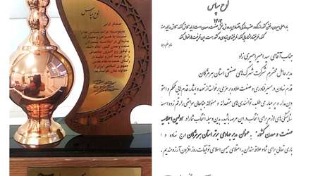 مدیرعامل شرکت شهرکهای صنعتی هرمزگان به عنوان مدیر جهادی برتر استان هرمزگان در اولین اجلاسیه پیشرانان صنعت و معدن کشور معرفی شد