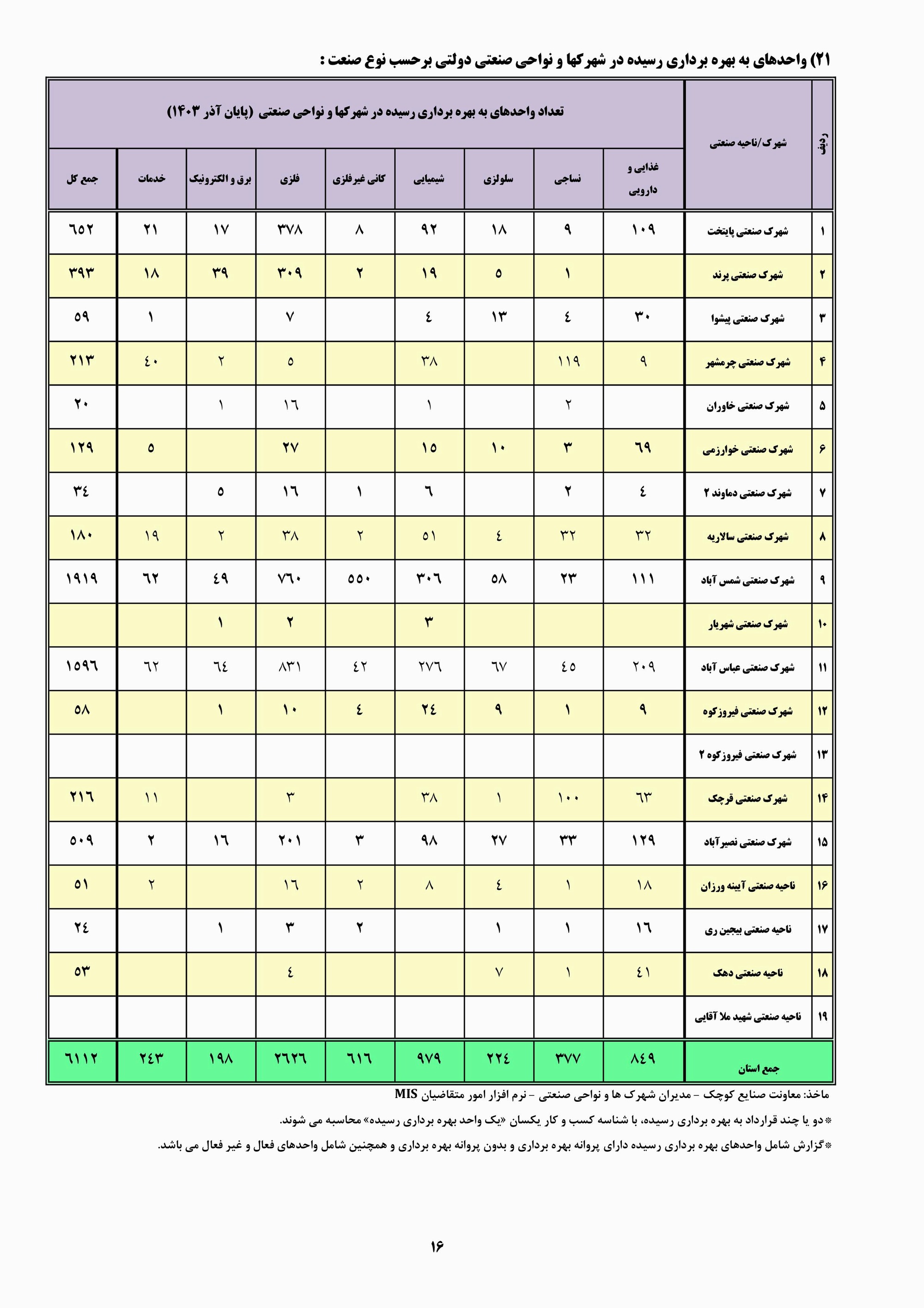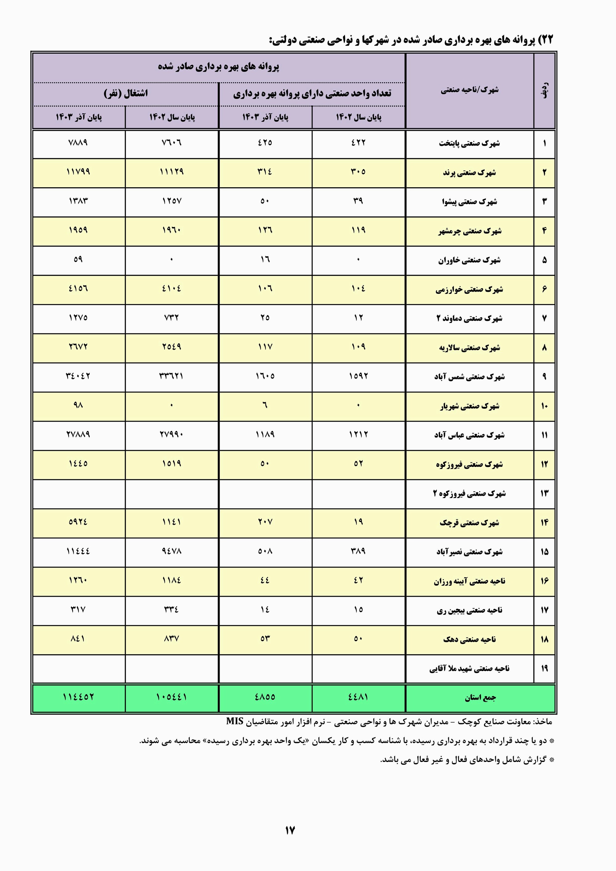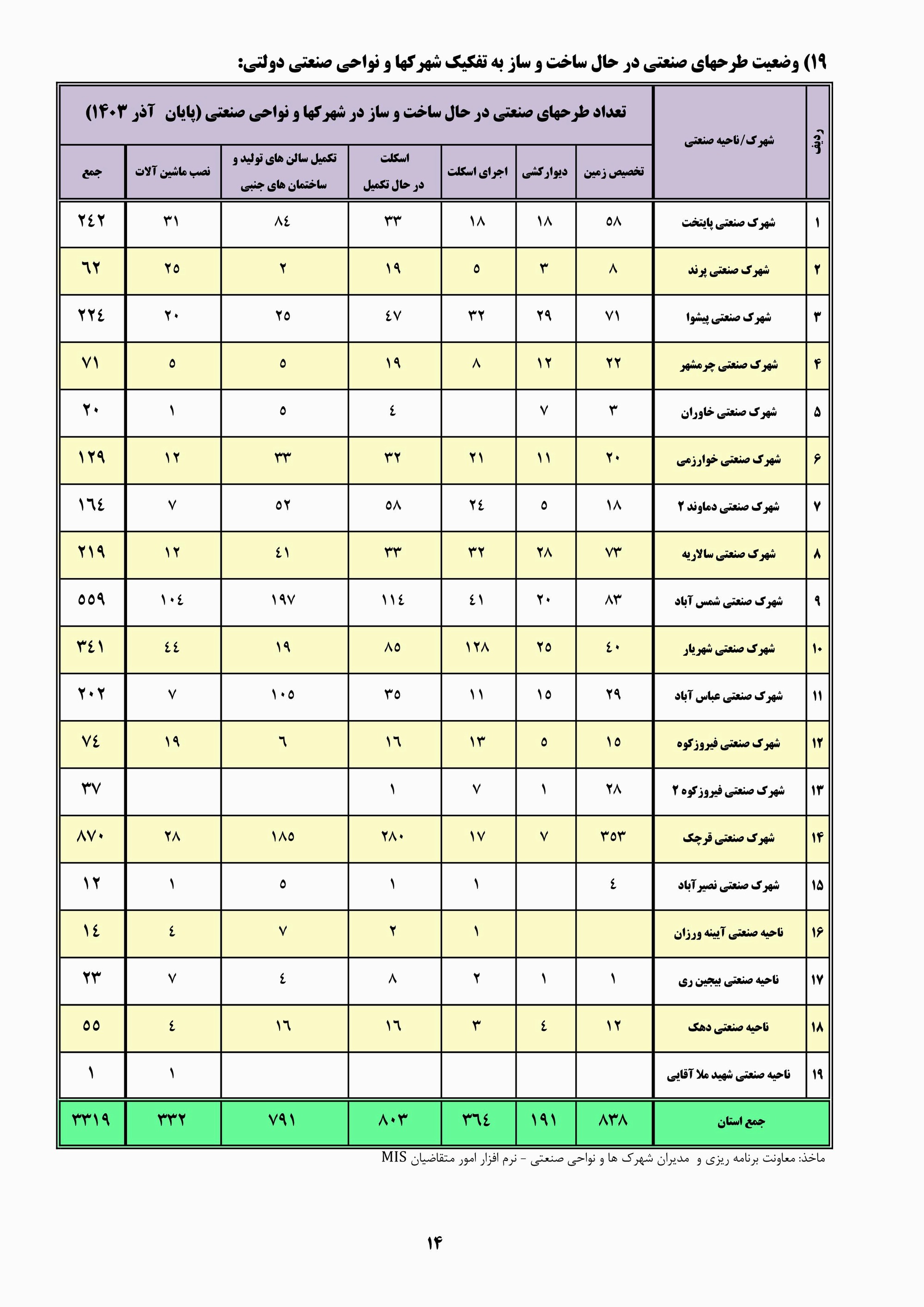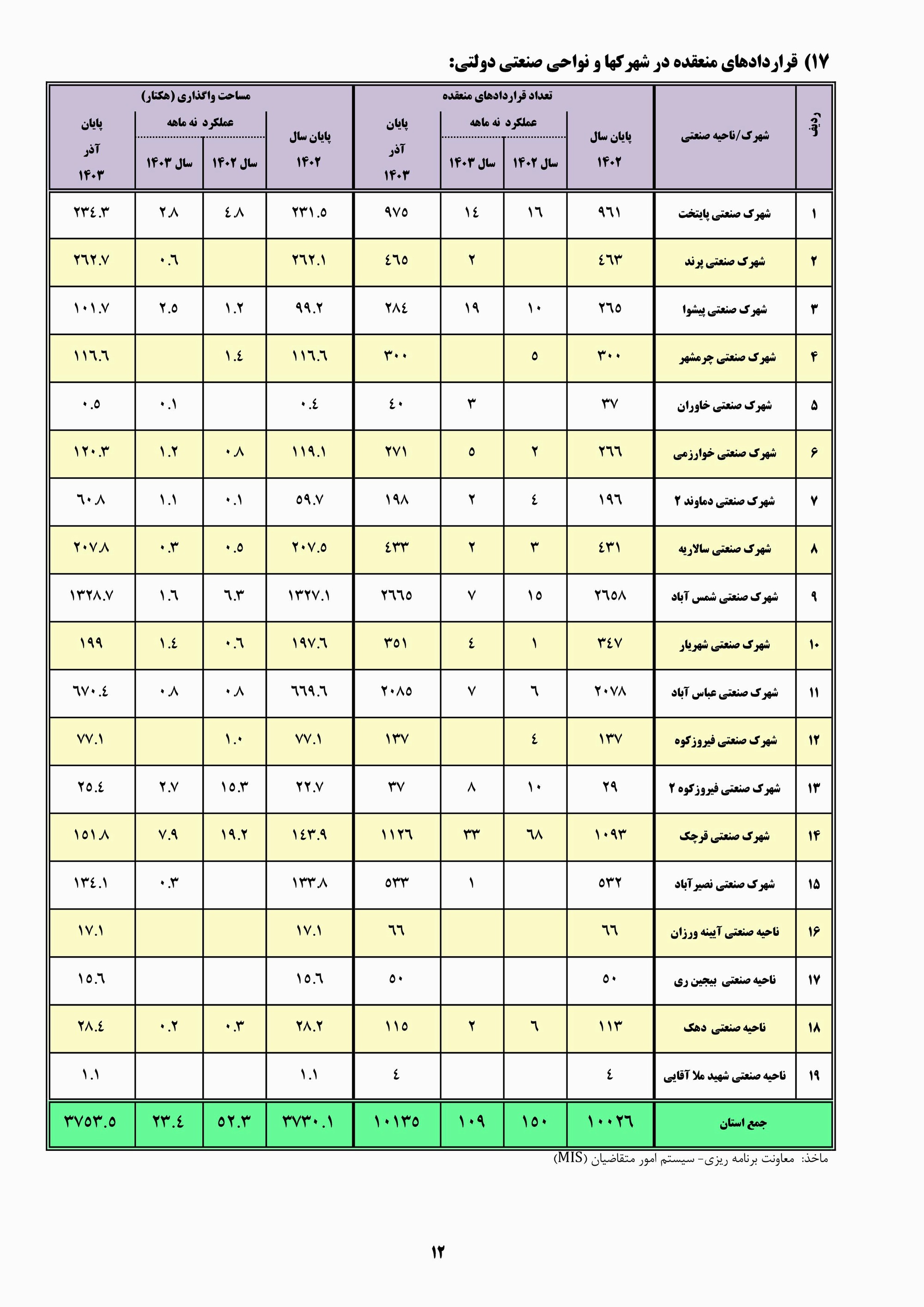 اهم آمار و اطلاعات شرکت شهرک های صنعتی تهران (پایان آذر ماه 1403) 1403/11/06 - 14:27 - تعداد بازدید: 54 - تعداد بازدیدکننده: 54 - کد خبر : 31194 - گروه خبری : تهران - تعداد نظرات : 0
