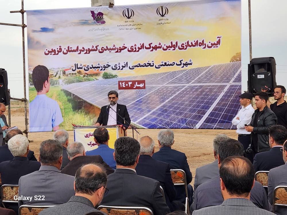 به گزارش روابط عمومی سازمان صنایع کوچک و شهرکهای صنعتی ایران، روز سه شنبه در مراسمی با حضور"عباس علی آبادی" وزیر صمت، "فرشاد مقیمی" معاون وزیر و مدیرعامل سازمان صنایع کوچک و شهرک های صنعتی ایران،"محمد مهدی اعلایی" استاندار قزوین، "آقا علیخانی" دبیر ستاد تسهیل و رفع موانع تولید، "رحمانی" معاون اقتصادی استاندار قزوین، "رستمی" مدیرکل صمت و "صفاری" مدیرعامل شرکت شهرک های صنعتی استان، "اینانلو" مدیرعامل شرکت توزیع نیروی برق استان، اولین شهرک انرژی خورشیدی کشور در منطقه صنعتی شال راه اندازی شد.