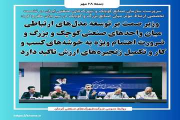 سرپرست سازمان صنایع کوچک و شهرکهای صنعتی ایران در نشست تخصصی ارتباط موثر میان صنایع بزرگ و کوچک مطرح کرد:
