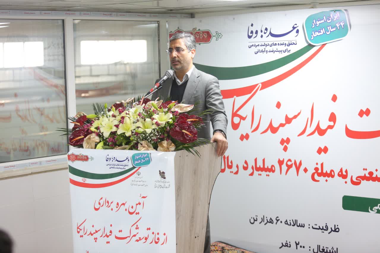 به گزارش روابط عمومی سازمان صنایع کوچک و شهرکهای صنعتی ایران، علی رسولیان روز سهشنبه و در هفتمین روز از دهه مبارک فجر، فاز توسعه "شرکت فیدار سپند رایکا" همزمان با 15طرح عمرانی شهرکهای صنعتی قم (با اعتبار 2670 میلیارد ریال) را مورد افتتاح و بهره برداری قرار داد.